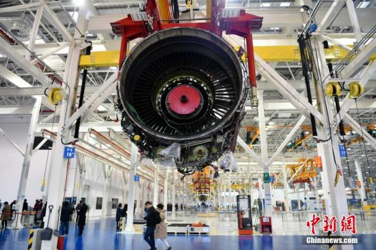 1月15日,四川國(guó)際航空發(fā)動(dòng)機(jī)保稅維修基地內(nèi)一臺(tái)處于維修狀態(tài)的發(fā)動(dòng)機(jī)。 中新社記者 張浪 攝