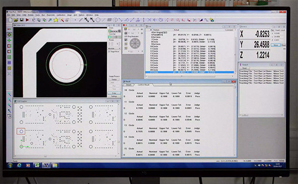 Close-up of the Nikon Metrology iNEXIV control screen running AutoMeasure software.The manufacturer prides itself on the supply of PCBs in short lead times, three to five days turnaround being the norm from order to delivery. Around half a dozen new jobs are progressed through the factory on a typical day, with up to 15 boards requiring in-process checking.