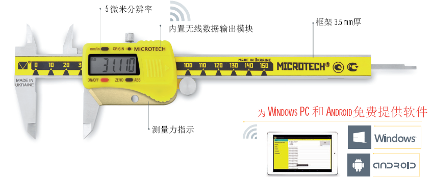 ??內(nèi)置無線數(shù)據(jù)輸出模塊為 Windows PC 或Android 設(shè)備傳輸數(shù)據(jù)
