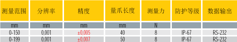 外部量爪精度達(dá)到 ± 5 μm1微米分辨率電子模塊最佳測(cè)量力 (8n)鋁合金力模塊框架 3.5mm厚自動(dòng)喚醒功能10分鐘不使用會(huì)進(jìn)入睡眠模式深度桿100% 計(jì)量控制isO 17025 證書要求