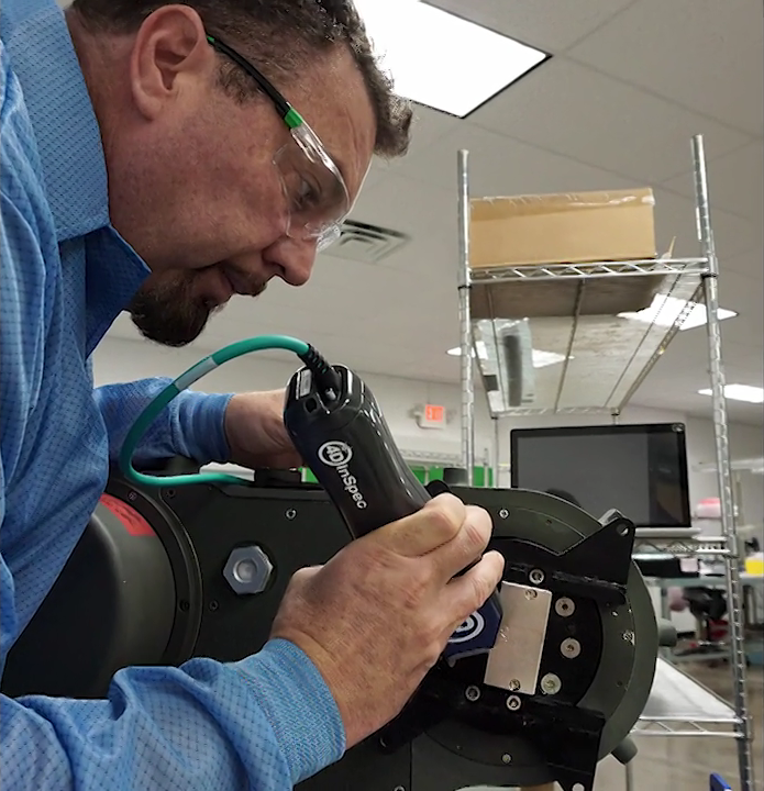 4D InSpec可在工廠車間進(jìn)行3D測量,對從0.0002英寸到0.1英寸(5μm-2.5mm)深或高的凹坑,劃痕,刻痕,凹痕,凸起,孔隙等特征,進(jìn)行量化的檢測。?4D InSpec可手持進(jìn)入角落或?qū)Υ笮捅砻孢M(jìn)行取樣。一個(gè)可選的折疊鏡附件,讓系統(tǒng)像內(nèi)窺鏡一樣可以進(jìn)入盲孔和內(nèi)腔。一鍵式的操作和沒有可移動(dòng)的傳感器,使得它易于組裝和測量,堅(jiān)固的設(shè)計(jì)和單根電纜可以承受日常嚴(yán)酷的使用。在工作站的配置中,4D InSpec可以更快、更容易的獲得可重復(fù)的質(zhì)量控制數(shù)據(jù)。一個(gè)直觀的觸摸屏界面用來設(shè)置,操作,分析和報(bào)告的生成。?4D InSpec也可以安裝在機(jī)器人上,以實(shí)現(xiàn)全自動(dòng)測量復(fù)雜的零件。